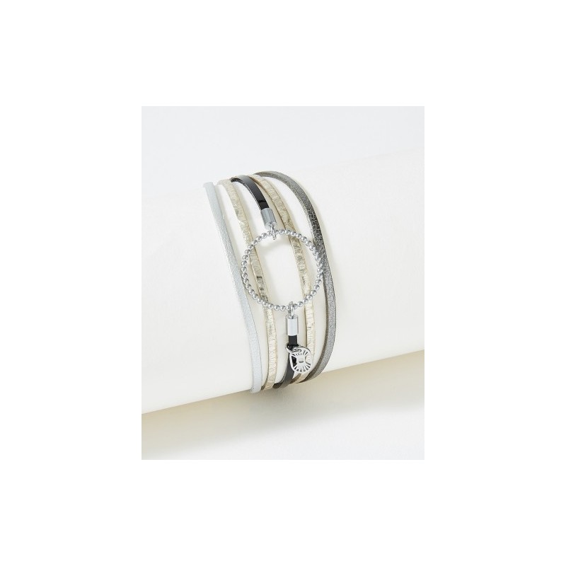 Bracelet acier "Flowers for Zoé" multirang cuir made in France