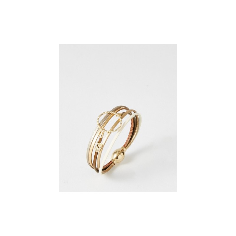 Bracelet acier PVD "Flowers for Zoé" multirang cuir made in France marron