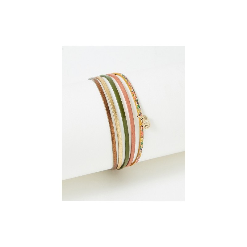 Bracelet acier PVD "Flowers for Zoé" multirang cuir made in France fleurs
