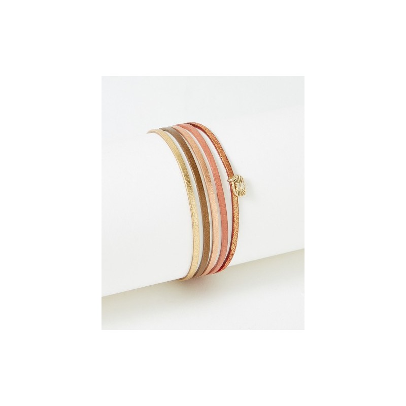 Bracelet acier PVD "Flowers for Zoé" multirang cuir made in France cuivré