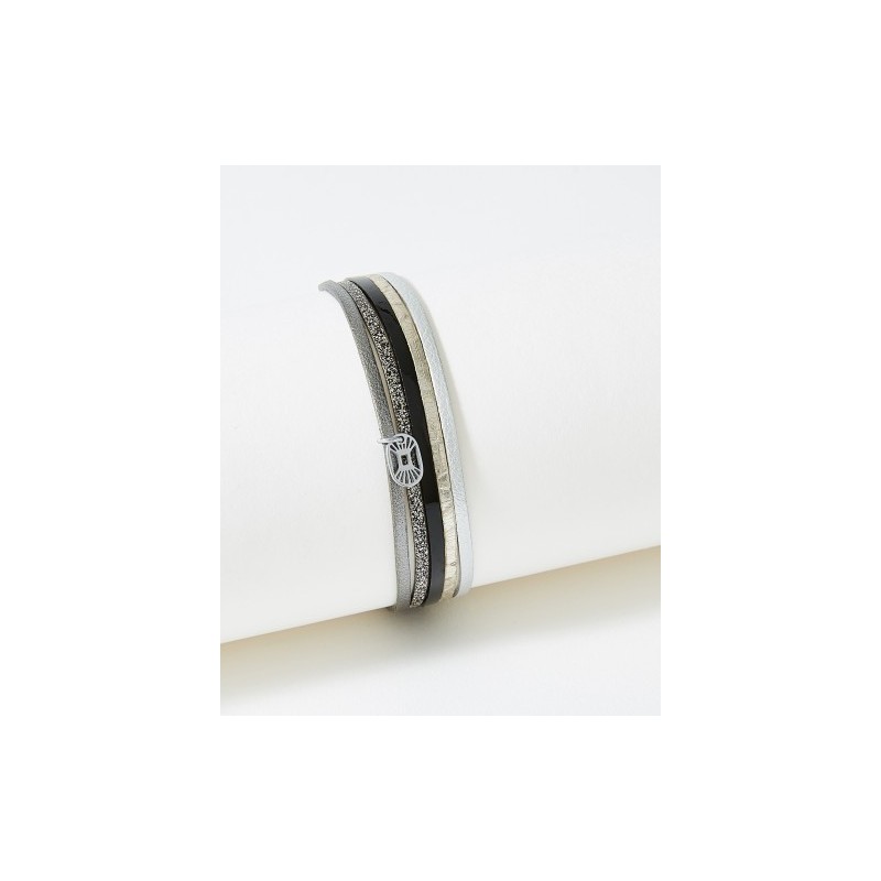 Bracelet acier "Flowers for Zoé" multirang cuir made in France argenté