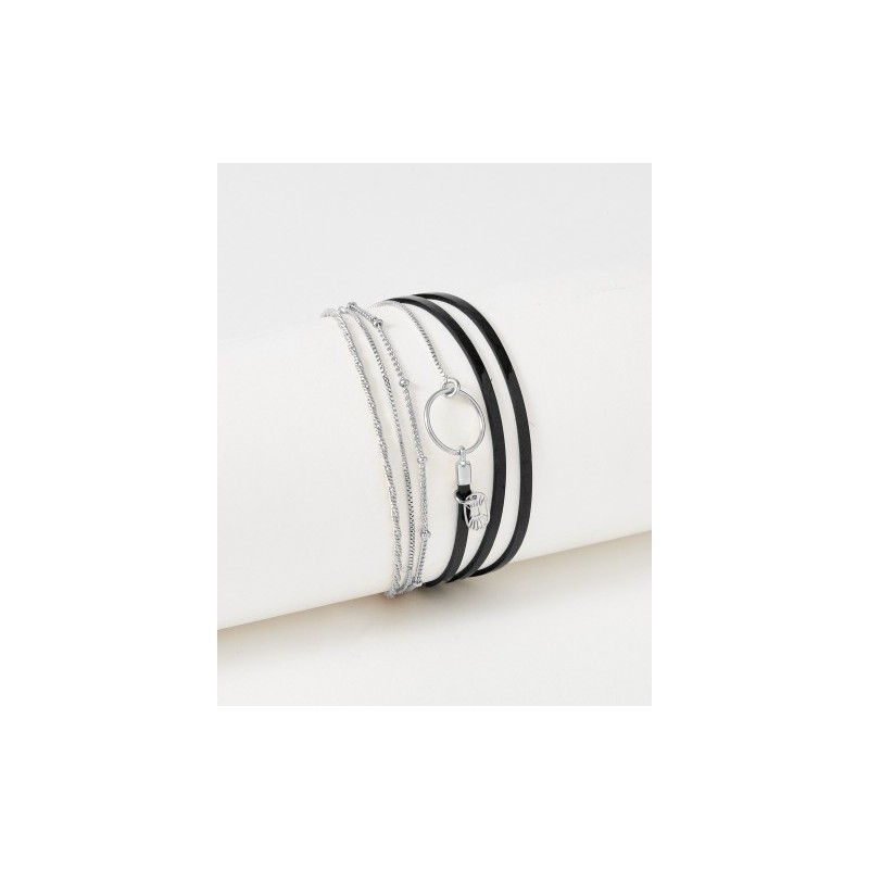 Bracelet acier "Flowers for Zoé" cuir noir vernis made in France