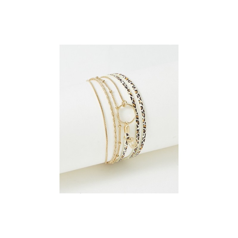Bracelet acier PVD "Flowers for Zoé" multirang cuir made in France léopard blanc