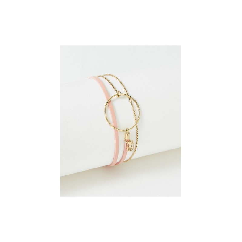 Bracelet acier PVD "Flowers for Zoé" multirang cuir noir vernis made in France