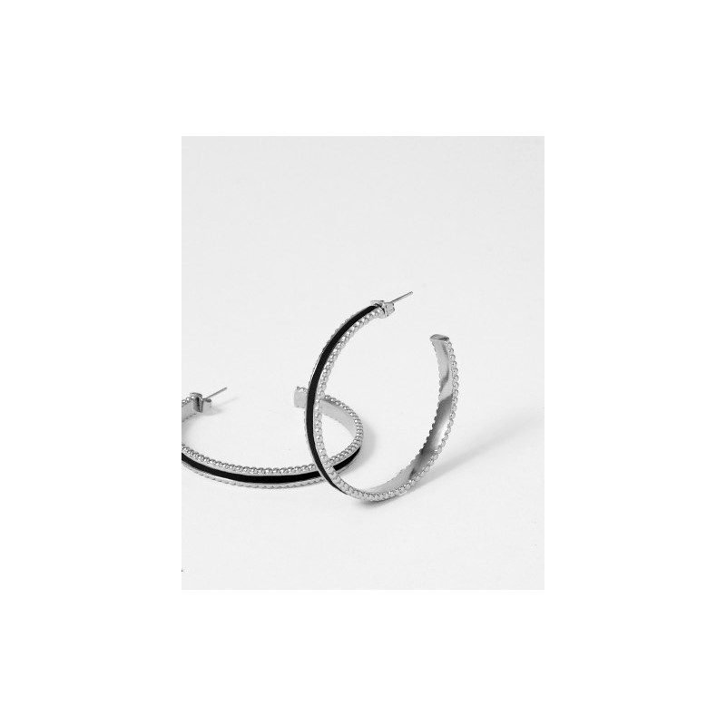 Boucles d'oreilles acier "Flowers for Zoé" cuir noir vernis made in France