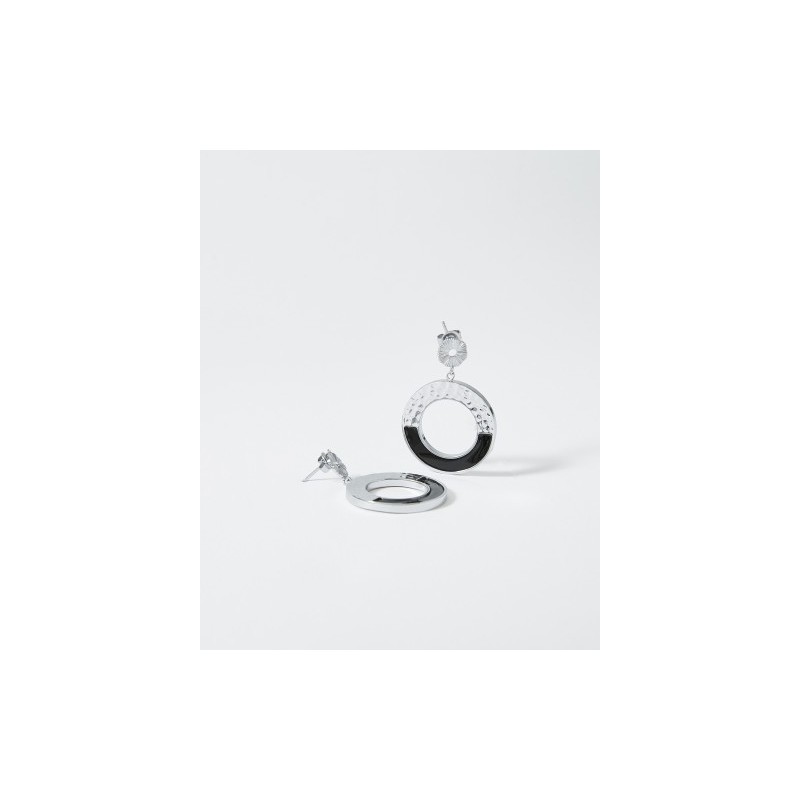 Boucles d'oreilles acier Flowers for Zoé cuir noir vernis