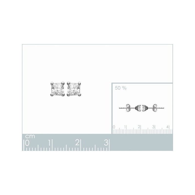 Boucles d'oreilles argent 925/1000 oxyde carré 4mm rhodié