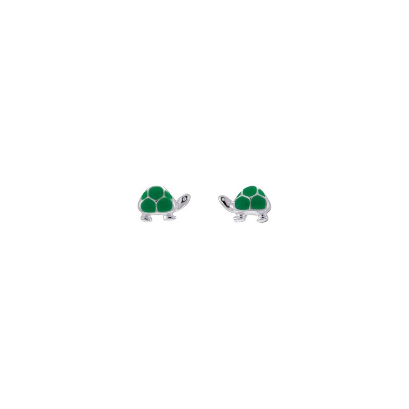 Boucles d'oreilles argent 925/1000 rhodié tortue verte