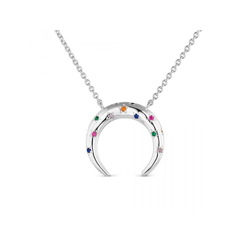 Collier argent 925/1000 lune inversée oxydes multicolores