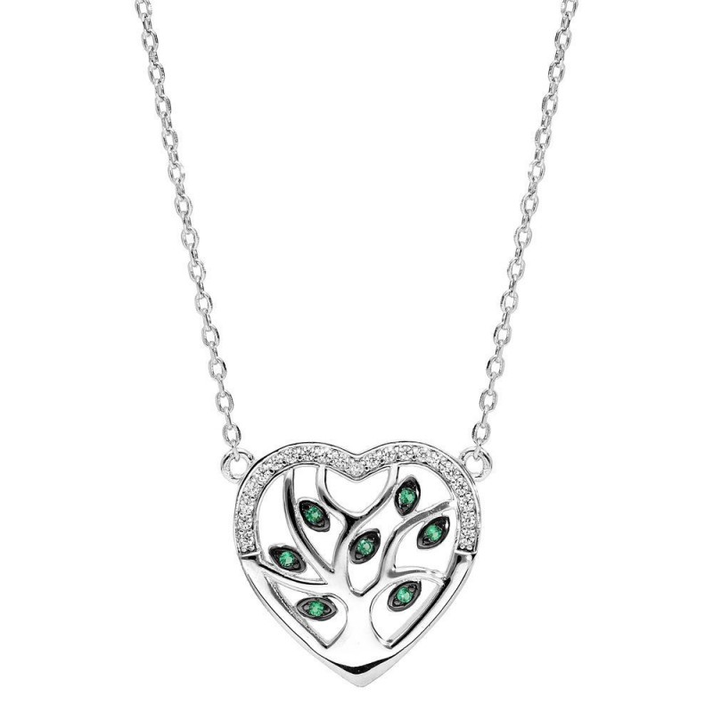 Collier argent 925/1000 coeur contour oxydes arbre de vie