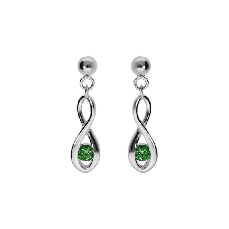 Boucles d'oreilles argent 925/1000 empierrées rhodié infini oxyde vert