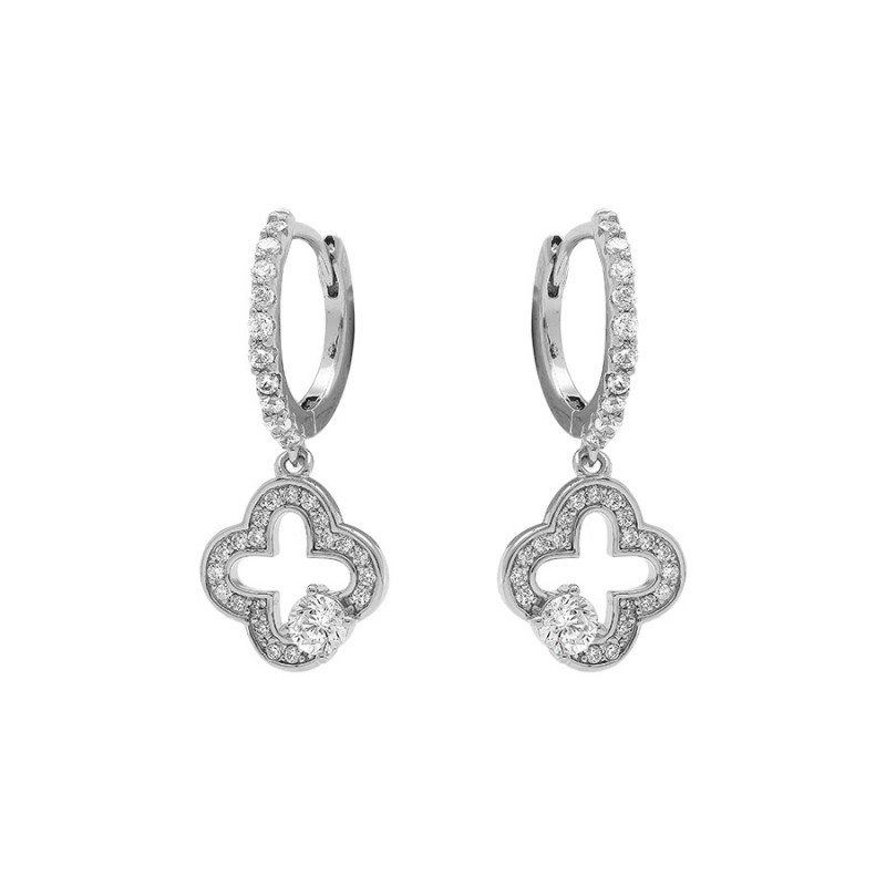 Créoles argent 925/1000 rhodié rail oxydes et pampille fleur oxydes