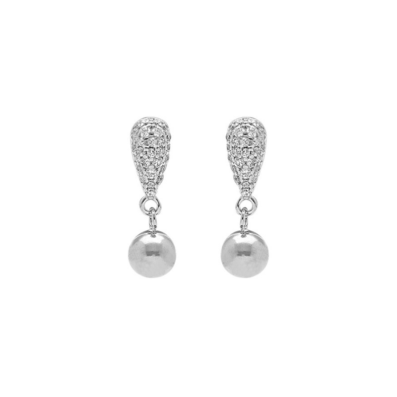 Boucles d'oreilles argent 925/1000 empierrées rhodié goutte pavée d oxydes blanc