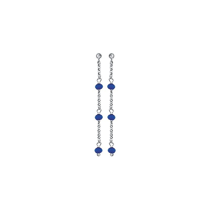 Boucles d'oreilles argent 925/1000 RHODIE PENDANTE 3 BOULES PERLES DE VERRE FACE