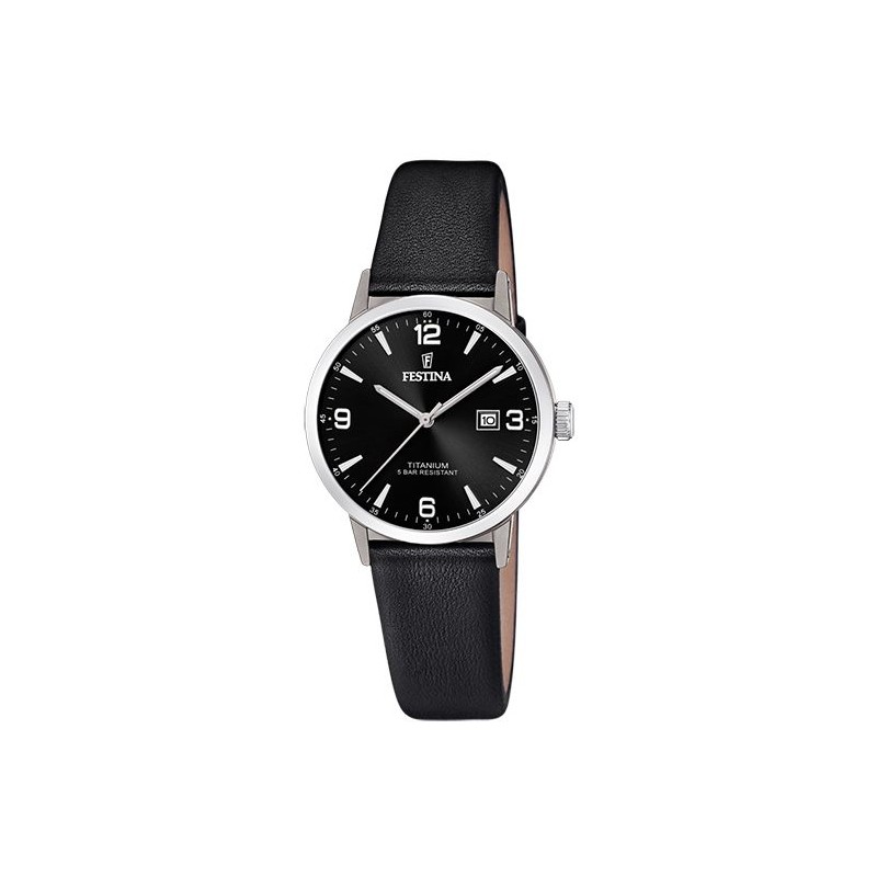 Montre dame titane sur cuir FESTINA TT CHIFFRE + DATE