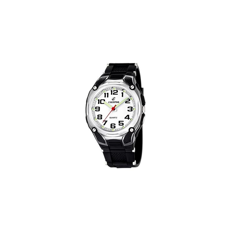 Montre homme plastique CALYPSO aiguilles brac noir articulé + fd blanc