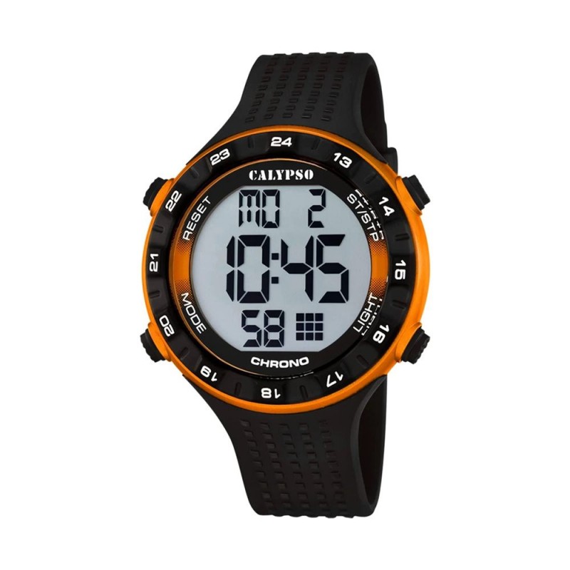 Montre homme affichage LCD CALYPSO bracelet noir tour orangé
