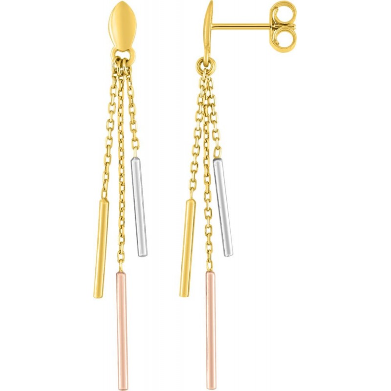 Boucles d'oreilles or 750/1000 pendantes multifils tricolore