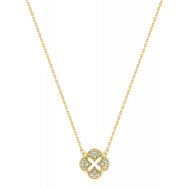 Collier or 750/1000 et oxyde de zirconium trèfle évidé