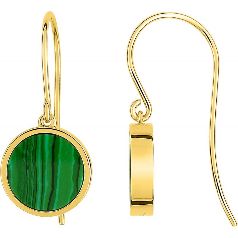 Boucles d'oreilles or 750/1000 crochet malachite ronde