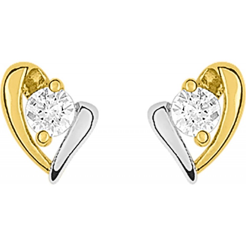 Boucles d'oreilles or 750/1000 et oxyde de zirconium clou bicolore