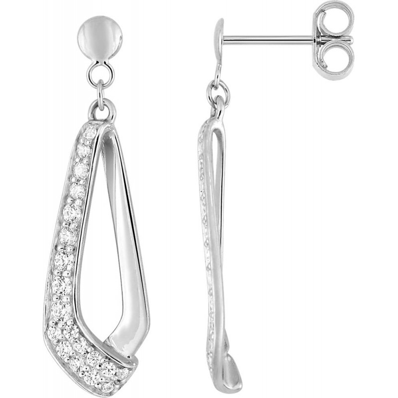 Boucles d'oreilles or 750/1000 et oxyde de zirconium pendantes or blanc