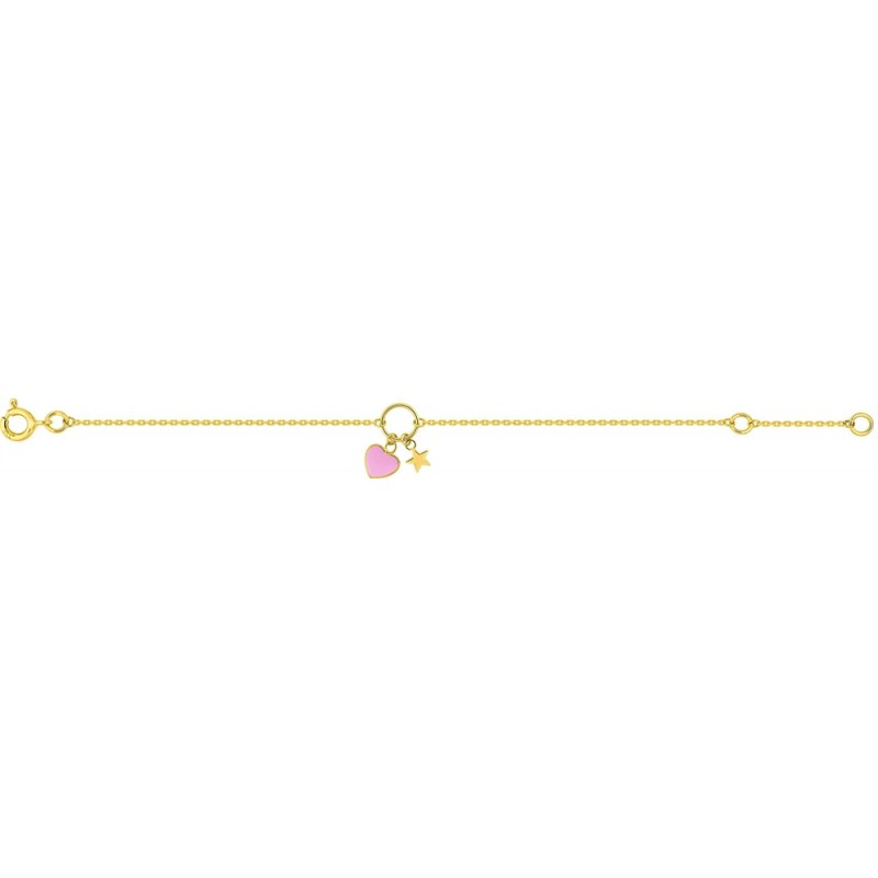 Bracelet or 750/1000 bébé étoile et coeur laque rose