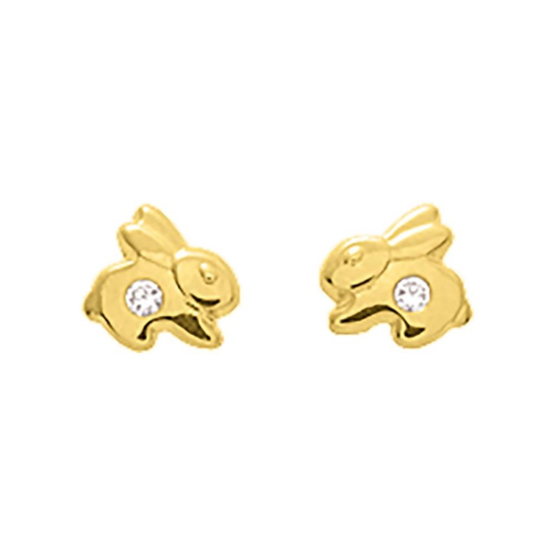 Boucles d'oreilles or 750/1000 et oxyde de zirconium clou lapin
