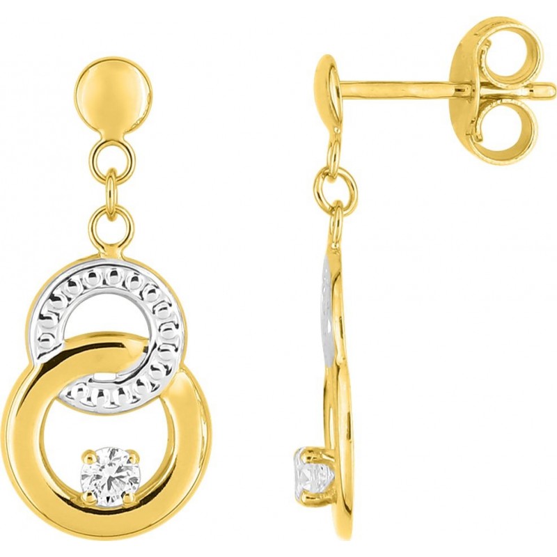 Boucles d'oreilles or 750/1000 et oxyde de zirconium 2 cercles entremelés