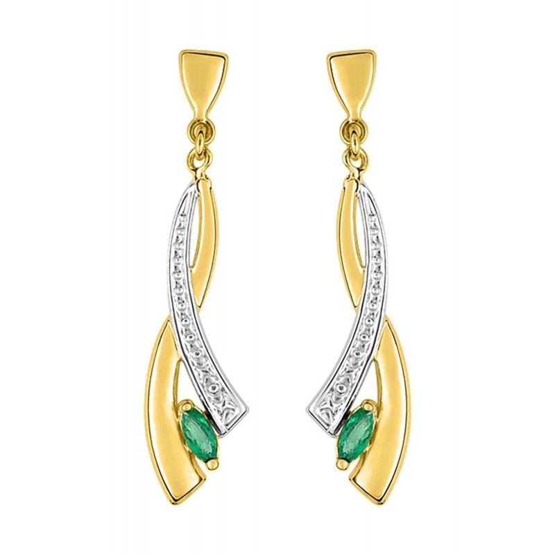 Boucles d'oreilles or 750/1000 et pierre précieuse pendantes bicolores émeraude